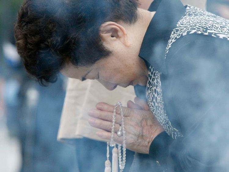 Am 06. August 1945 warfen die Amerikaner über der japanischen Stadt Hiroshima eine Atombombe ab. Mit Räucherstäbchen gedachten zahlreiche Menschen der Opfer des Angriffs.