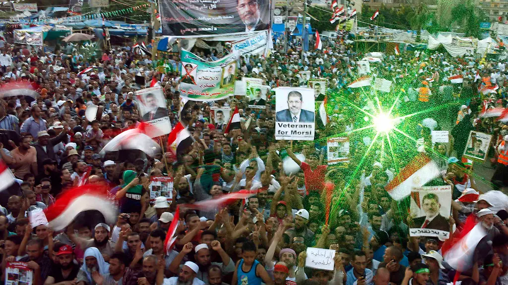 Aus Furcht vor der angekündigten Räumung bezogen auf dem Rabaa-al-Adawija-Platz dutzende vermummte Islamisten Stellung auf einem Wall aus Ziegeln und Sandsäcken. Mursis Anhänger halten seit dessen Sturz gemeinsam mit ihren Frauen und Kindern den Rabaa-al-Adawija-Platz und den Nahda-Platz nahe der Universität Kairo besetzt.