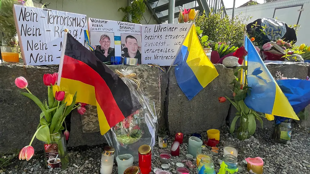 Die beiden mutmaßlich von dem Russen erstochenen Ukrainer im Alter von 23 und 36 Jahren sind nach Angaben aus Kiew Angehörige der Streitkräfte des Landes gewesen. Die beiden Männer seien nach Kriegsverletzungen zur medizinischen Rehabilitation in Deutschland gewesen, berichteten ukrainische Medien. Am Tatort an einem Einkaufszentrum lagen am Montag Blumen und Transparente, unter anderem mit der Aufschrift "Nein - Terrorismus! Nein - Krieg! Nein - Morde! Nein - Tod!" Daneben Bilder der beiden Getöteten, die ukrainische Flagge und Kerzen.