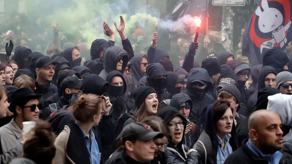 Dichte Rauchschwaden zogen durch die Luft. Nach Angriffen mit Fahnenstangen setzte die Polizei Pfefferspray ein. An der Spitze des Zuges liefen vermummte und schwarz gekleidete Teilnehmer. Es herrschte eine teils aggressive Stimmung. Es gab Festnahmen.