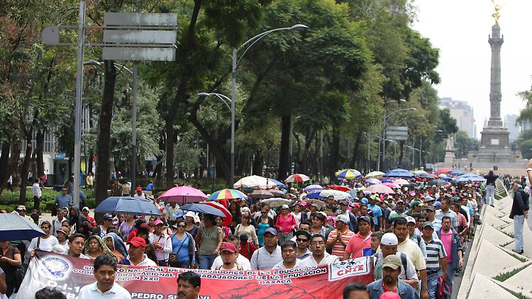 Seit Tagen campieren rund 10.000 Lehrer auf einem zentralen Platz in der Altstadt, um einen von Präsident Enrique Peña Nieto geplanten Umbau des Bildungssystems zu verhindern. Das Parlament in Mexiko nahm das umstrittene Gesetz zur Reform des Bildungssystems am späten Sonntagabend an. Es ist das dritte Gesetz einer umstrittenen Bildungsreform, die nach der Wahl von Nieto im Dezember von den drei großen Parteien beschlossen worden war. Besonders umstritten ist die Idee, die Beförderung der Lehrer und ihr Gehalt von dem Ergebnis einer regelmäßigen Evaluierung ihrer Arbeit abhängig zu machen.