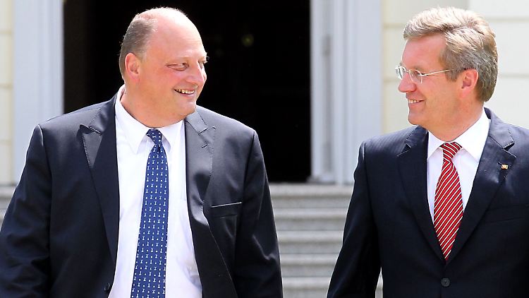 Bundespräsident Wulff und sein damaliger Sprecher Glaesecker (l) im Juni 2011 in Schloss Bellevue.