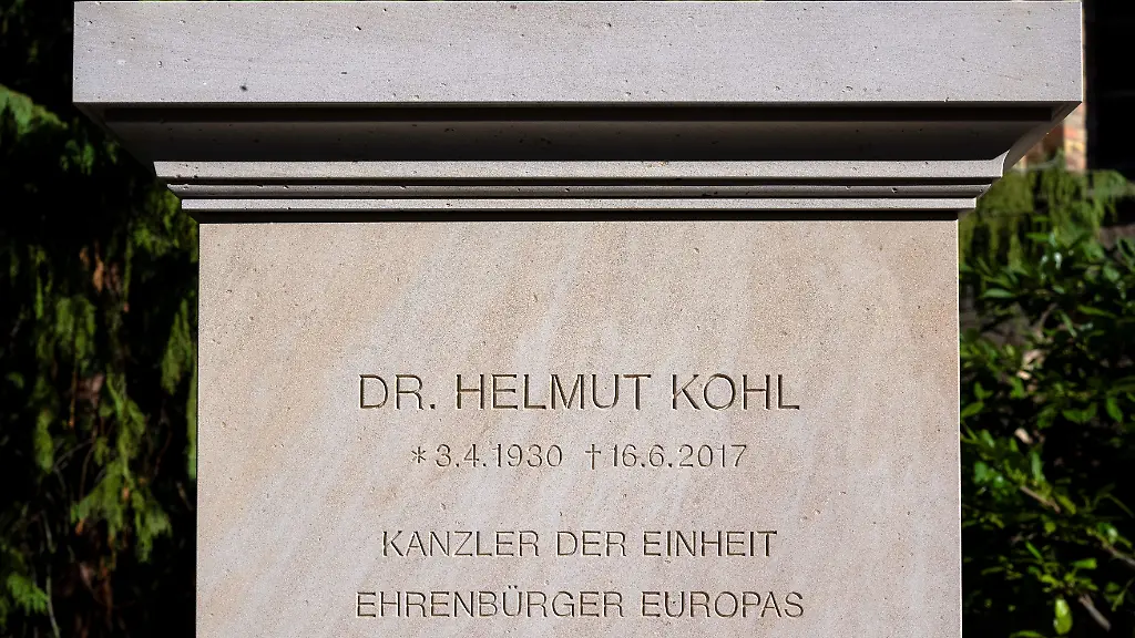 Das Grab des langjährigen Bundeskanzlers Helmut Kohl ist in mehrwöchigen Arbeiten als letzte Ruhestätte mit Denkmalcharakter umgestaltet worden. In Speyer (Pfalz) steht nun ein etwa 2,50 Meter hoher Gedenkstein aus hellgelbem Sandstein mit Namen sowie Geburts- und Sterbedatum von Kohl (1930-2017). Darunter ist "Kanzler der Einheit" und "Ehrenbürger Europas" zu lesen. Die Schrift ist von Hand in den Stein gehauen.
