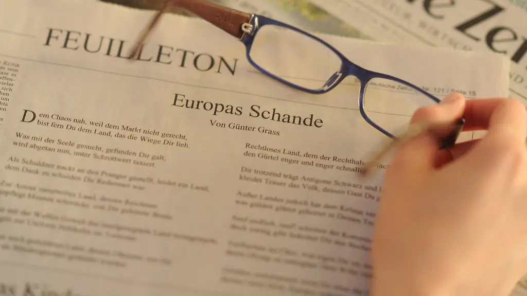 Unter dem Titel "Europas Schande" beklagt Grass unter anderem, Griechenland werde "als Schuldner nackt an den Pranger gestellt" und "unter Schrottwert taxiert". Mit seinem Gedicht ist Grass auch im Originalton zu hören - er hat es exklusiv für Radio Bremen vorgelesen. Auch die griechische Zeitung "Kathimerini" druckte die Verse - kommentarlos.