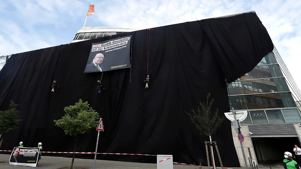 Die Aktivisten warfen Bundeswirtschaftsminister Peter Altmaier (CDU) und dessen Partei vor, Wissenschaftlern sowie der Kohlekommission nicht zuzuhören. Das geplante Kohleausstiegsgesetz der Bundesregierung sei eine "Farce", kommentierte die Greenpeace-Sprecherin. "Unser aller Geld soll verwendet werden, um für die Schäden aufzukommen, die die Kohleindustrie verursacht hat." Die Polizei bestätigte einen Einsatz.