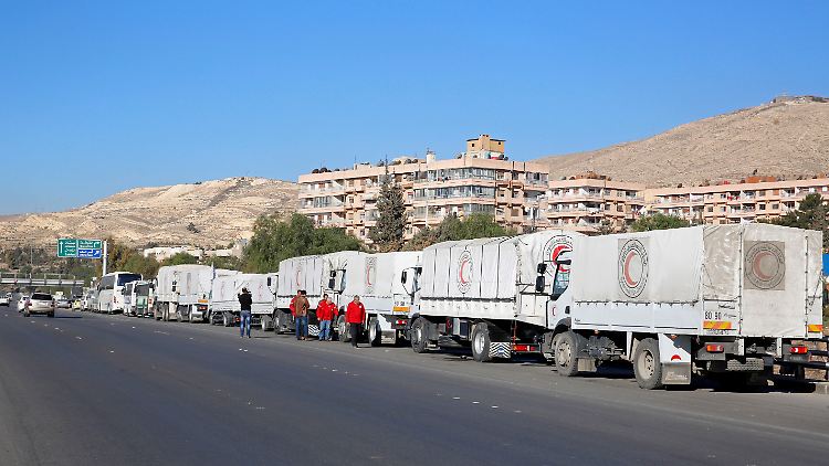 Anzeichen für eine Feuerpause gibt es nicht. Am Mittwoch erreichten endlich die ersten UN-Hilfskonvois eine Reihe belagerter Städte im Norden Syriens. In Damaskus bereitete der Rote Halbmond mehr als 100 Lastwagen mit Hilfsgütern für den Transport in belagerte Städte vor. Sie sollen zu fünf eingekesselten Orten bei Damaskus und in der Provinz Idlib aufbrechen.
