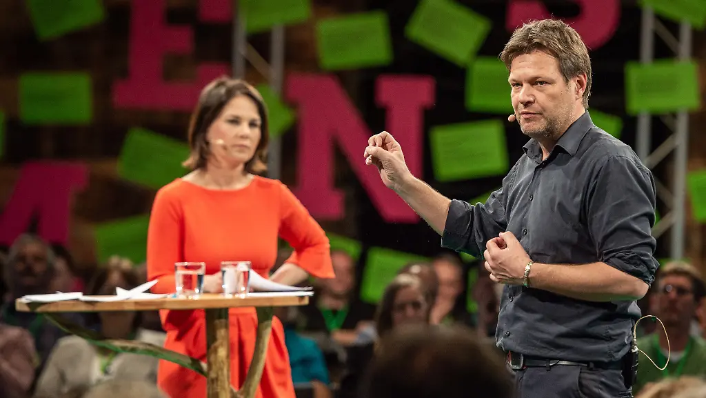 "Wir müssen die Werte der Partei an den neuen Herausforderungen messen", sagte Parteichef Robert Habeck zum Auftakt des Startkonvents in Berlin. Und seine Ko-Vorsitzende Annalena Baerbock rief die Partei auf: "Lasst uns wieder unsere Welt retten. Zuschauen ist keine Haltung." Auf dem Startkonvent umrissen Baerbock und Habeck die Schwerpunkte der Programmdebatte, bevor bis Samstag in Diskussionsforen und Workshops diskutiert wird. Ihr erstes Grundsatzprogramm hatte sich die Partei nach ihrer Gründung 1980 gegeben, das zweite im Jahr 2002. Nun geht es also in Richtung Grundsatzprogramm Nummer drei.