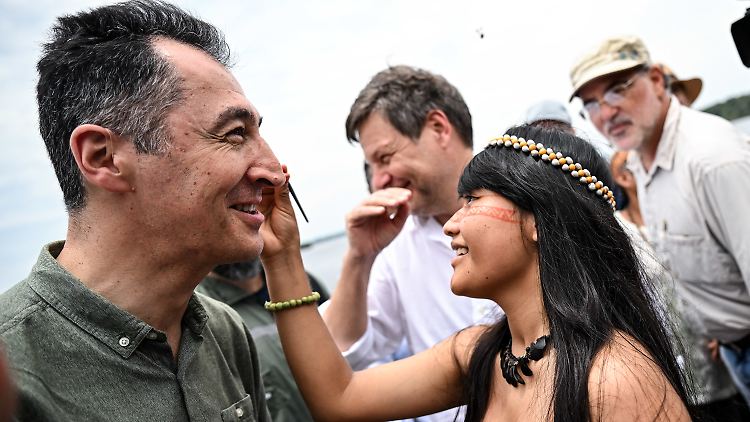 Spektakuläre Bilder, bleibende Eindrücke und auch ein wenig Inszenierung: Auf dem Höhepunkt ihrer Brasilienreise besuchen Vize-Kanzler Habeck und Landwirtschaftsminister Özdemir ein Dorf im Regenwald. Der Hintergrund des Ausflugs könnte ernster nicht sein.