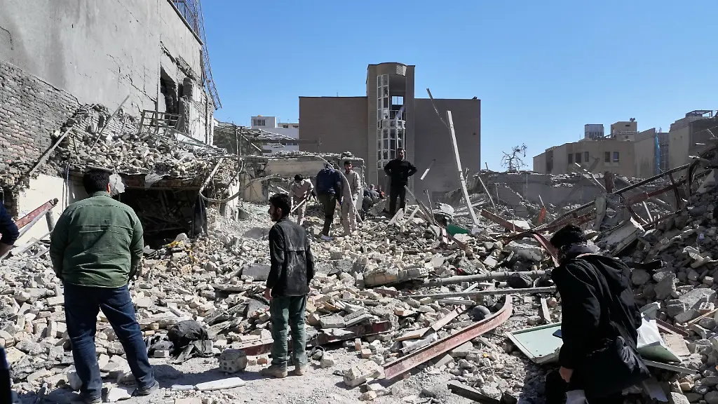 Männer inspizieren die Trümmer einer zerstörten Polizeistation in Teheran. (Foto: picture alliance/dpa/AP)