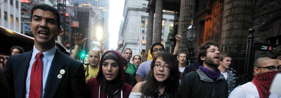 Auch in den USA protestierten wieder Tausende. In New York demonstrierten mehrere tausend Menschen im Finanzdistrikt. Umringt von einem starken Polizeiaufgebot führten Demonstranten erneut Plakate mit Aufschriften wie "Wir sind die 99 Prozent" und "Wir sind das Volk" mit.
