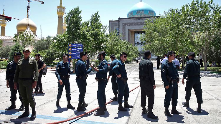 Am Mausoleum von Staatsgründer Khomeini sprengte sich eine Frau in die Luft, der zweite Angreifer wurde laut dem Innenministerium erschossen. Zuvor war dort von zwei Selbstmordattentätern die Rede gewesen. Sicherheitskräfte riegelten das Parlament und das Grabmal ab, das an der Autobahn zur Theologenstadt Ghom südlich von Teheran liegt.