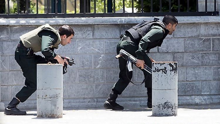 Zwei Gruppen hatten am Vormittag den Parlamentskomplex im Stadtzentrum und das Mausoleum südlich von Teheran gestürmt. Laut dem Vize-Innenminister Hossein Solfagari waren die vier Angreifer am Parlament als Frauen verkleidet. Ein Angreifer zündete seinen Sprengstoffgürtel in einem Bürogebäude des Parlaments, wo sich die Angreifer verschanzt hatten. Die anderen drei wurden erschossen.