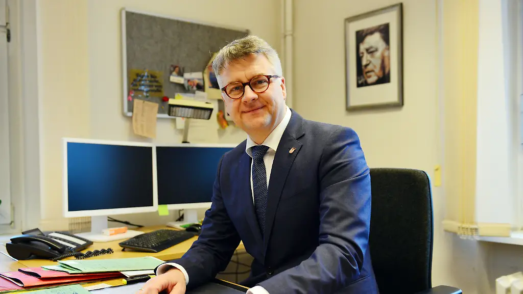 Franz Josef Strauß schaut ernst. Was würde der einstige CSU-Übervater wohl dazu sagen, dass sein Konterfei die Wand ausgerechnet dieses ansonsten eher schmucklosen Büros im Bezirksamt Berlin-Spandau ziert? Unter dem Bild steht der Schreibtisch von Andreas Otti, dem Bezirksstadtrat für Liegenschaftsmanagement, Umwelt- und Naturschutz.