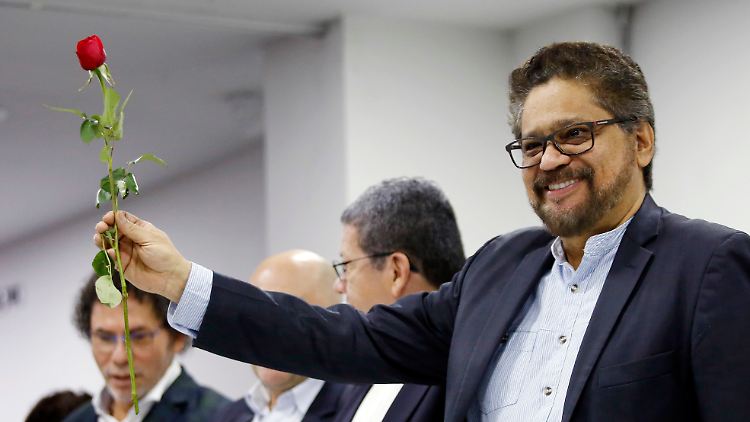 Ivan Márquez war der Verhandlungsführer des Farc-Friedens mit der Regierung - eine Rose ist das zentrale Element des Parteilogos.