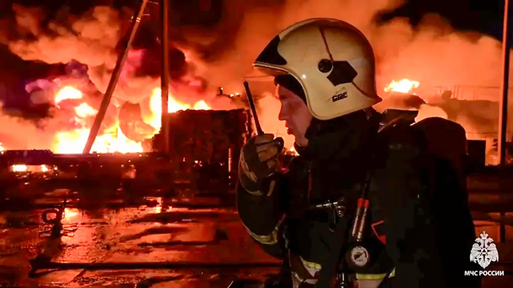 Drohneneinschlag verantwortlich?In Russland brennen zwei Tanklager