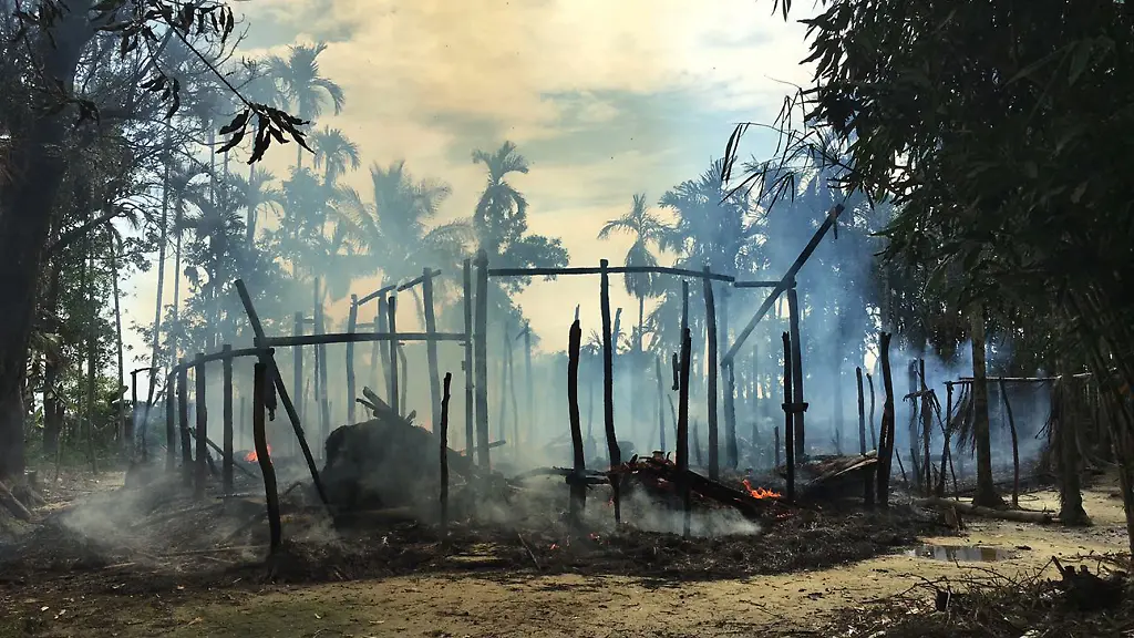 FILE-In-this-Sept-7-2017-file-photo-smoke-rises-from-a-burned-house-in-Gawdu-Zara-village-northern-Rakhine-state-where-the-vast-majority-of-the-country-s-1-1-million-Rohingya-lived-Myanmar