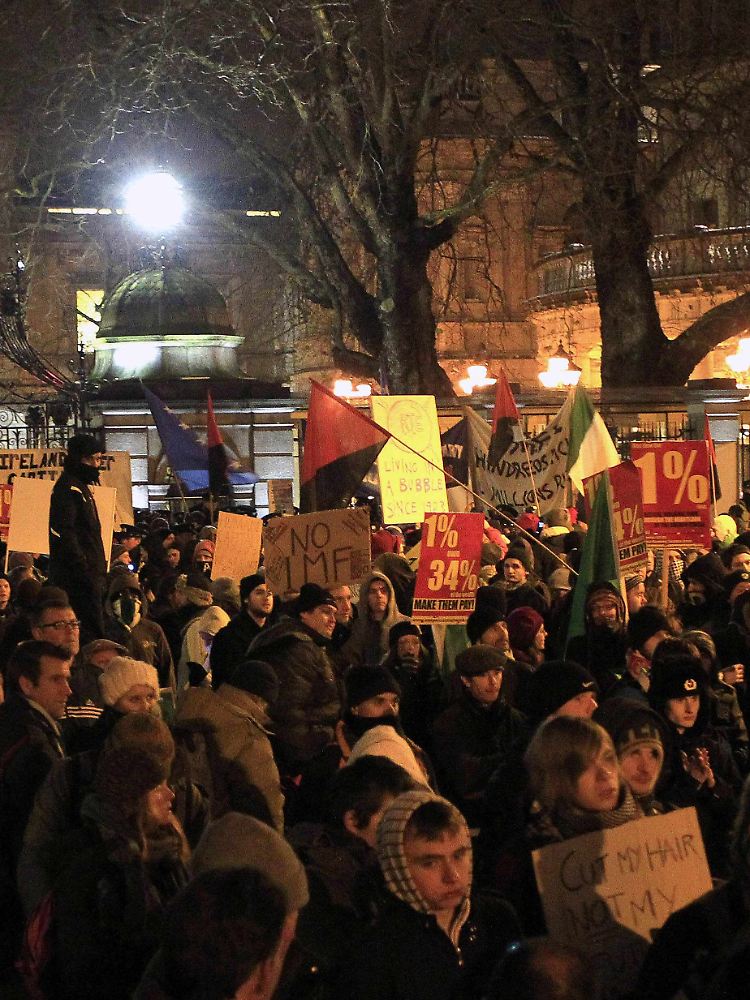Die Einschnitte für die Iren beziehen sich nicht nur auf das kommende Jahr. Bereits im November hatte die Regierung einen Vier- Jahres-Plan vorgelegt, der Einsparungen von 15 Milliarden Euro bis 2014 vorsieht. Den Koalitionspartnern von der Fianna-Fáil-Partei und den Grünen brachte das heftige Kritik ein, in Dublin protestierten die Menschen auf der Straße und vor dem Parlament.