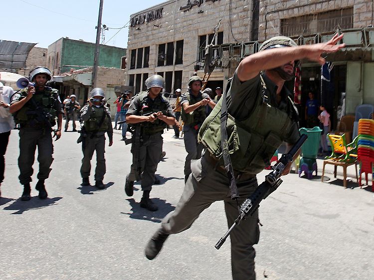 Israelische Soldaten vertreiben die Steinewerfer mit Tränengaspatronen. In anderen Fällen kommen auch Gummigeschosse zum Einsatz.
