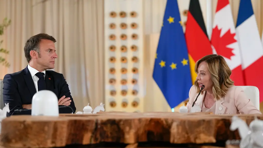 Meloni warf Macron unterdessen vor, den G7-Gipfel zu nutzen, um von Italien aus Wahlkampf zu machen. Es gehe nicht darum, einen Rückzieher zu machen, sondern darum, unnötige Wiederholungen zu vermeiden, sagte sie und verwies auf den in der ausverhandelten Abschlusserklärung enthaltenen Verweis auf das Kommuniqué der G7 von Hiroshima. Sie halte es für zutiefst falsch, in schwierigen Zeiten wie diesen ein so wertvolles Forum wie den G7-Gipfel für Wahlkämpfe zu nutzen.
