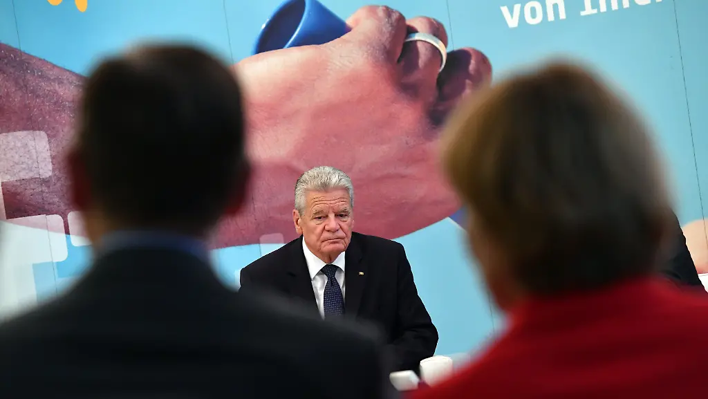 Bei dem Auftritt habe Gauck Beobachtern zufolge bereits zu Beginn der Runde angeschlagen gewirkt und mit auffallend schwacher Stimme gesprochen. Bevor er den Raum verließ, posierte er allerdings mit den Gesprächsteilnehmern noch für ein Foto.