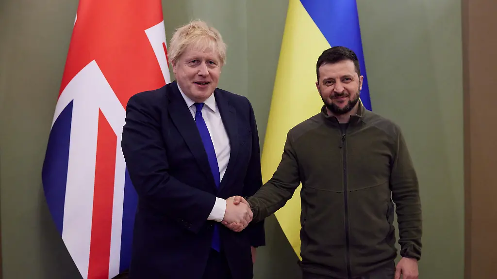 "Der Premierminister ist in die Ukraine gereist, um Präsident Selenskyj persönlich zu treffen, als ein Zeichen der Solidarität mit dem ukrainischen Volk", sagte ein britischer Regierungssprecher. Die beiden wollten die langfristige Unterstützung Großbritanniens für die Ukraine besprechen. Johnson wolle ein neues Paket finanzieller und militärischer Hilfe darlegen. Selenskyj bezeichnete Großbritannien als "Führer bei der Verteidigungsunterstützung der Ukraine".