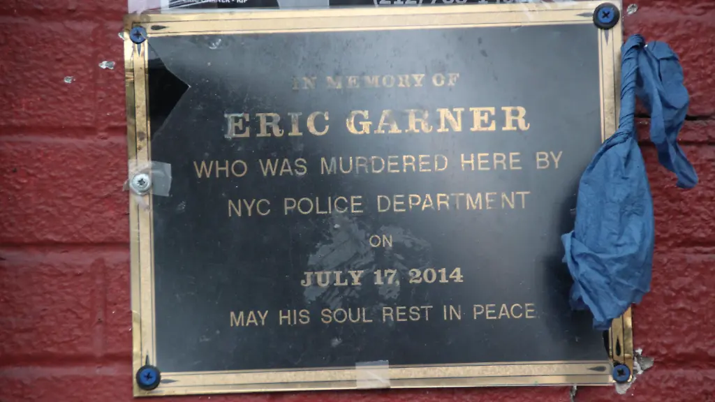 Am Tompkinsville Park, wo Eric Garner starb, zwischen einem Taxi-Serviceladen und einem Schönheitssalon, ist ein improvisiertes Gedenkschild hinter Plastik an die Wand genagelt: "Im Andenken an Eric Garner, der hier am 17. Juli 2014 von der New Yorker Polizei ermordet wurde", steht darauf. "Möge seine Seele in Frieden ruhen."