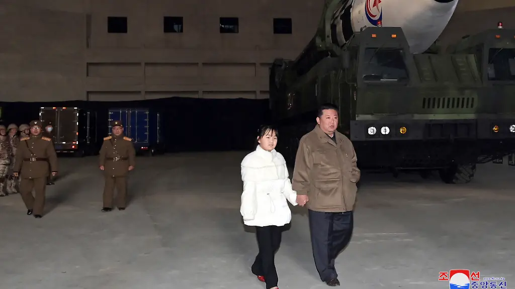 Nordkoreas Machthaber Kim Jong Un hat sich zum ersten Mal mit seiner Tochter in der Öffentlichkeit gezeigt und damit die seit Langem kursierenden Berichte über ihre Existenz bestätigt. Das Mädchen begleitete ihn am Freitag bei der Inspektion des größten ballistischen Interkontinentalraketenstarts des Landes. Kim sei "zusammen mit seiner geliebten Tochter und Frau" beim Start einer Interkontinentalrakete anwesend gewesen, berichtete die staatliche Nachrichtenagentur KCNA.