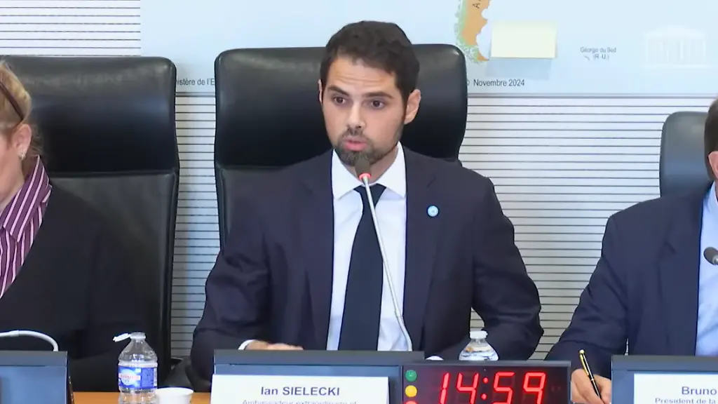 Auch juristisch sei das ein Problem, sagte Sielecki, der sich direkt vor dem Kartenteil mit der Inselgruppe im Südatlantik befand. "Ich kann als Vertreter des argentinischen Staates nicht frei vor dieser Karte sprechen. Das würde eine Situation legitimieren, die eine Verletzung, einen Angriff auf die Souveränität meines Landes, auf die Ehre selbst der argentinischen Nation darstellt."