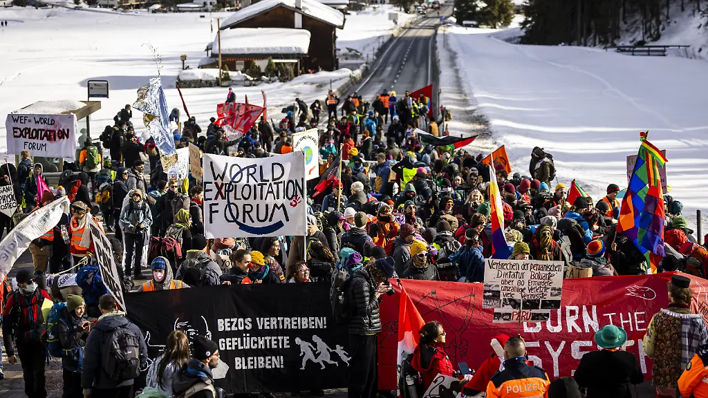 Kurz vor dem Start des Weltwirtschaftsforums (WEF) in Davos haben sich über 100 Aktivisten an mehreren Protestaktionen beteiligt. Sie demonstrierten am Samstag und Sonntag gegen die am Montag beginnende Veranstaltung mit einer Protestwanderung und Straßenblockaden. Bis Freitag tagen mehr als 2500 Teilnehmer aus Wirtschaft, Politik, Wissenschaft und Kultur in der Schweizer Kleinstadt. Aufgrund des Protests des Bündnisses von Schweizer und deutschen Klimaschützern gestaltete sich die Anreise zum WEF allerdings schwierig.