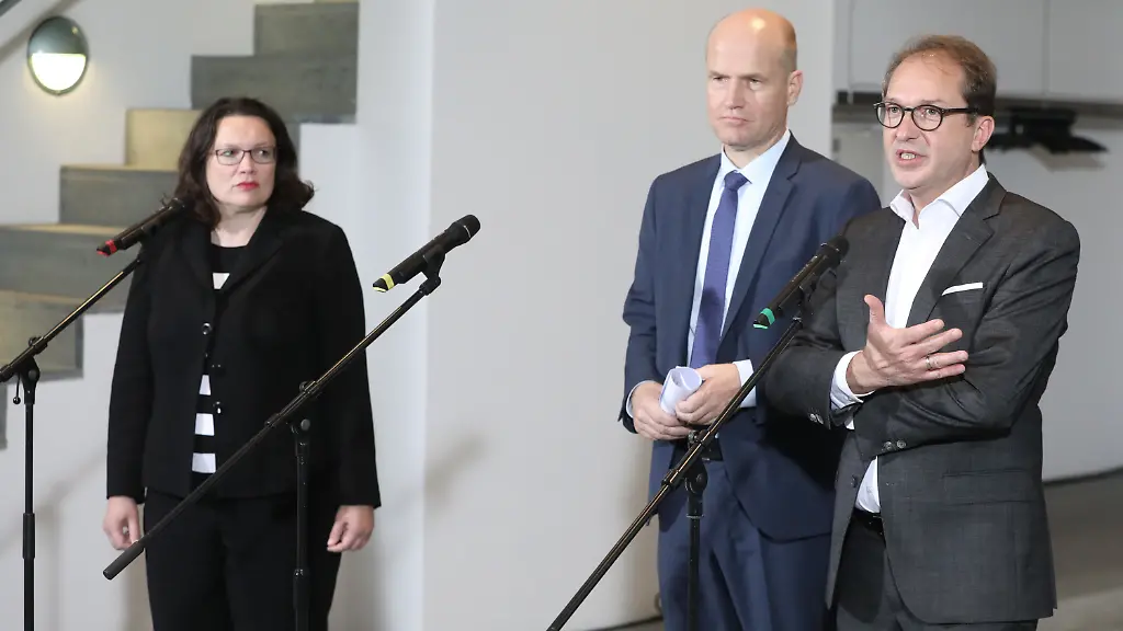 Die Spitzen der Großen Koalition haben sich auf ein Maßnahmenpaket verständigt, um Fahrverbote für Diesel-Pkw zu vermeiden. Das teilten die Fraktionsvorsitzenden von Union und SPD, Ralph Brinkhaus und Andrea Nahles, sowie CSU-Landesgruppenchef Alexander Dobrindt nach sechseinhalbstündigen Verhandlungen im Kanzleramt in Berlin mit. Details des "Konzepts für saubere Luft und die Sicherung der individuellen Mobilität in unseren Städten" würden die zuständigen Fachminister im Laufe des Tages erläutern.