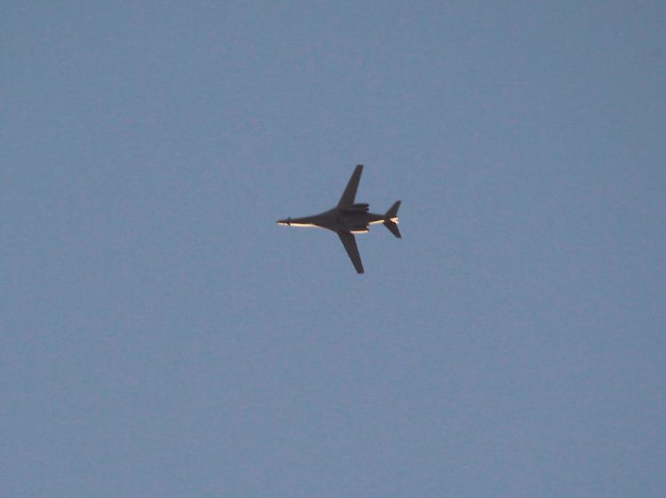 Vom Boden aus gut zu erkennen: Die US Air Force setzt im türkisch-syrischen Grenzgebiet auch schwere Überschallbomber vom Typ B-1B "Lancer" ein.