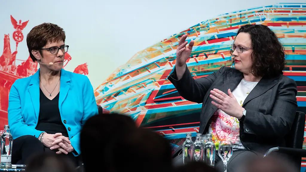 Über das Siechtum der großen Volksparteien lassen sich CDU-Chefin Kramp-Karrenbauer und SPD-Vorsitzende Nahles befragen. Es ist ein konfliktarmes Gespräch zweier Polit-Profis. Und doch lassen sich interessante Unterschiede beobachten.