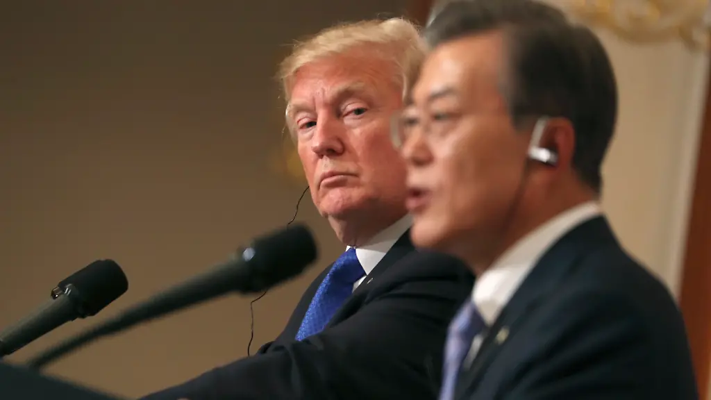 "Wir haben viele Dinge in Position, von denen wir bei Gott hoffen, dass wir sie nie einsetzen müssen", betonte Trump. Wörtlich verwies er auf mehrere Flugzeugträger und ein Atom-U-Boot. Nordkorea verstehe, dass die USA so stark seien wie noch nie. Moon sagte, die USA und Südkorea strebten eine friedliche Lösung des Atomstreits mit Nordkorea an. Trump und er seien einer Meinung, dass der Druck auf die Führung in Pjöngjang verstärkt werden müsse, "bis sie ihr Atomprogramm aufgibt". Die USA und ihre Verbündeten könnten Nordkorea eine "bessere Zukunft" anbieten.