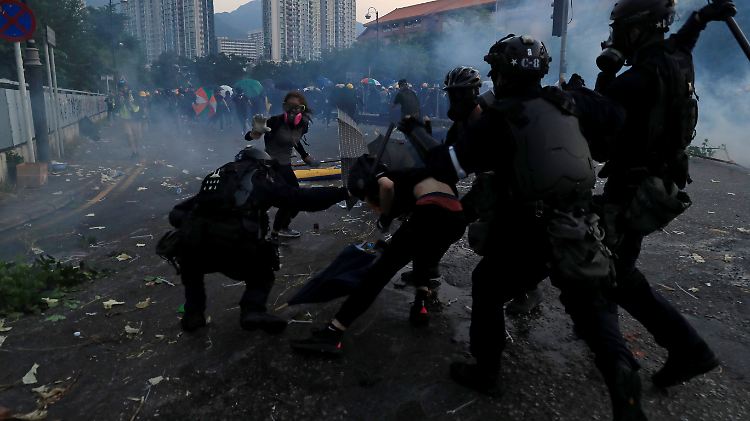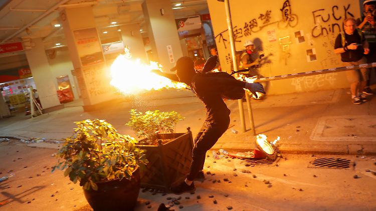Demonstranten werfen mit Steinen und Brandsätzen, auf der anderen Seite setzt die Polizei Tränengas und Schlagstöcke ein. Ein Video zeigt auch, wie ein Beamter mit einem Revolver auf einen Demonstranten schießt. An Chinas Nationalfeiertag gibt es erneut schwere Zusammenstöße.