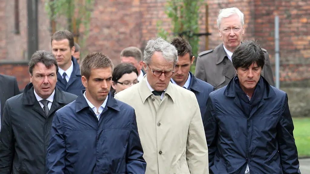 Vor dem Beginn der Fußball-Europameisterschaft in Polen und der Ukraine hatten am Freitag DFB-Präsident Wolfgang Niersbach, Bundestrainer Joachim Löw, Teammanager Oliver Bierhoff, Mannschaftskapitän Philipp Lahm sowie die polnischstämmigen Nationalspieler Miroslav Klose und Lukas Podolski der in Auschwitz ermordeten Opfer des Nationalsozialismus gedacht.