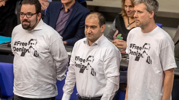 Drei Grünen-Politiker protestierten im Bundestag mit T-Shirts gegen die Inhaftierung Yücels.