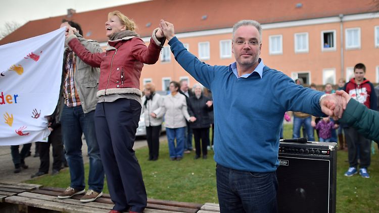 Zu der kleinen Demonstration in Tröglitz hatte der zurückgetretene Bürgermeister Nierth aufgerufen.
