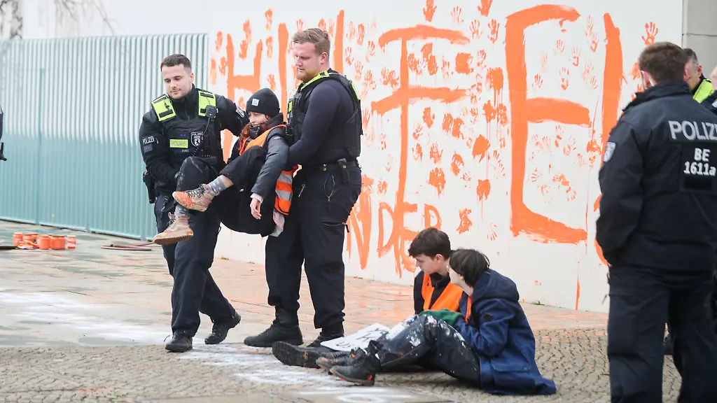 Jugendliche werden weggetragen Letzte Generation beschmiert Kanzleramt