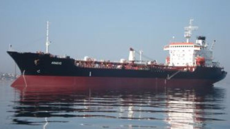 Der einer griechischen Reederei gehörende und unter Flagge Liberias fahrende Tanker "Araevo" habe vor libyschen der Hafenstadt Derna vor Anker gelegen. Die Besatzung, insgesamt 26 Seeleute, stamme aus Griechenland, Rumänien und von den Philippinen. Derna ist eine Hochburg islamischer Extremisten.