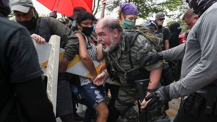 In Portland versammelten sich Lokalmedien zufolge mehrere Dutzend, teils bewaffnete rechtsextreme Demonstranten, um in der Hauptstadt des Bundesstaats Oregon Antifaschisten nach 80 Tagen der Proteste gegen Rassismus und Polizeigewalt die Stirn zu bieten. Auch hier habe es Handgemenge gegeben, hieß es in den Berichten. Ein Fotograf des Senders Koin 6 twitterte, er habe Schüsse gehört. Die örtliche Polizei war für eine Stellungnahme zunächst nicht erreichbar.