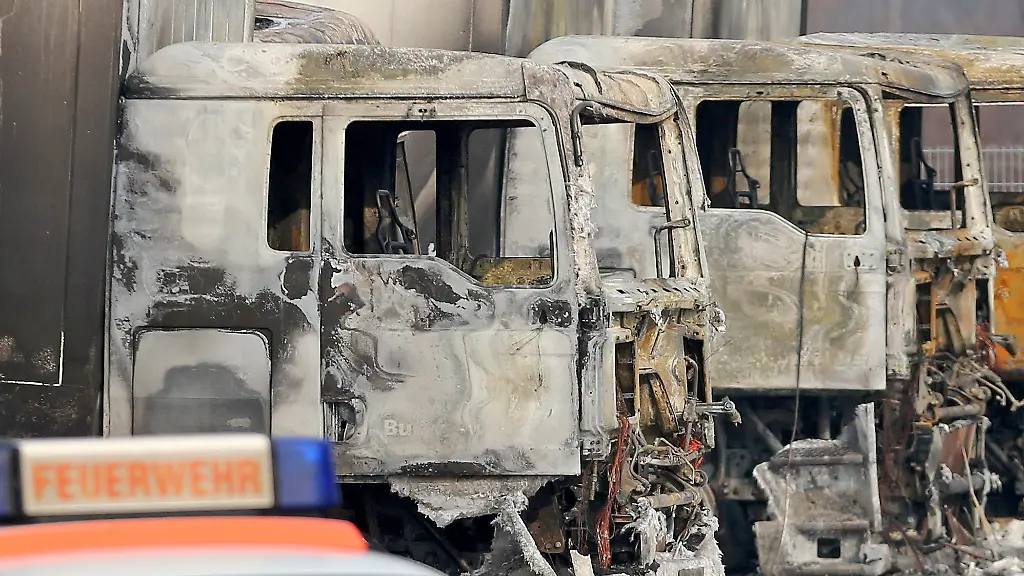 Bei dem Feuer waren in der Nacht auf Mittwoch insgesamt acht Lkw und zwei Anhänger auf dem Gelände einer Werkstatt in Flammen aufgegangen. Sechs Fahrzeuge davon - fünf Lkw und ein Anhänger - gehörten zu den Beständen der Bundeswehr. Eine Einheit aus der Region hatte die Bundeswehr-Lkw zur Inspektion auf dem umzäunten Parkplatz eines zivilen Vertragspartners abgestellt.