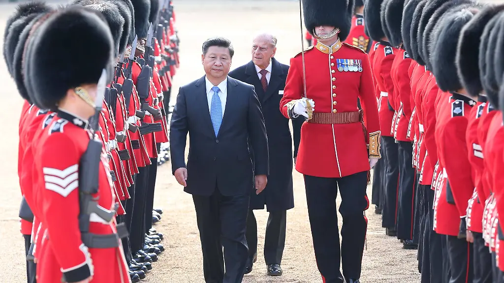Dem chinesischen Präsidenten, der von seiner Frau Peng Liyuan begleitet wird, wurde zum Auftakt seines Besuchs die Ehre einer Pferdeparade auf der zum Buckingham Palast führenden Mall zuteil. Königin Elizabeth II. sowie Prinz Philip und Prinz Charles waren mit dabei. Tausende Chinesen, die Fahnen schwenkten, jubelten Xi auf der Mall zu, auch ein Drachentanz wurde aufgeführt.