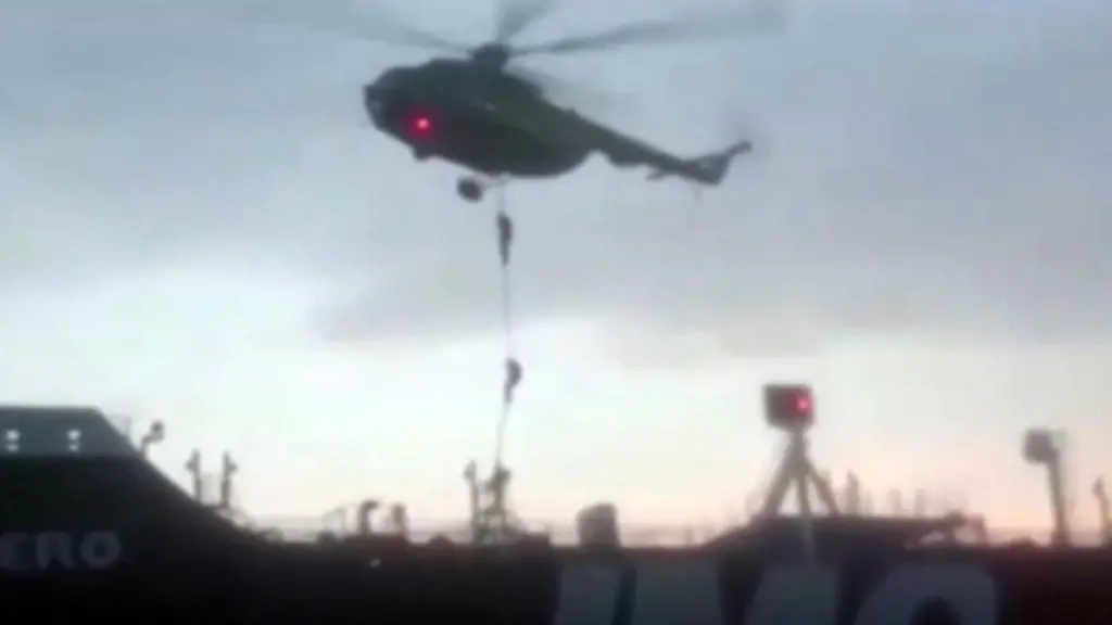 Auf einem Video der Revolutionsgarden, das die iranische Nachrichtenagentur Fars veröffentlichte, ist zu sehen, wie mehrere kleinere Boote und ein Hubschrauber sich dem Tanker näherten. Aus dem Hubschrauber seilten sich maskierte Männer ab.