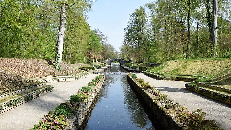 Der 28 Kilometer lange Kanal fließt durch die Kleinstadt und wurde nur angelegt, um die Fontänen des herzöglichen Wasserspiels anzutreiben.