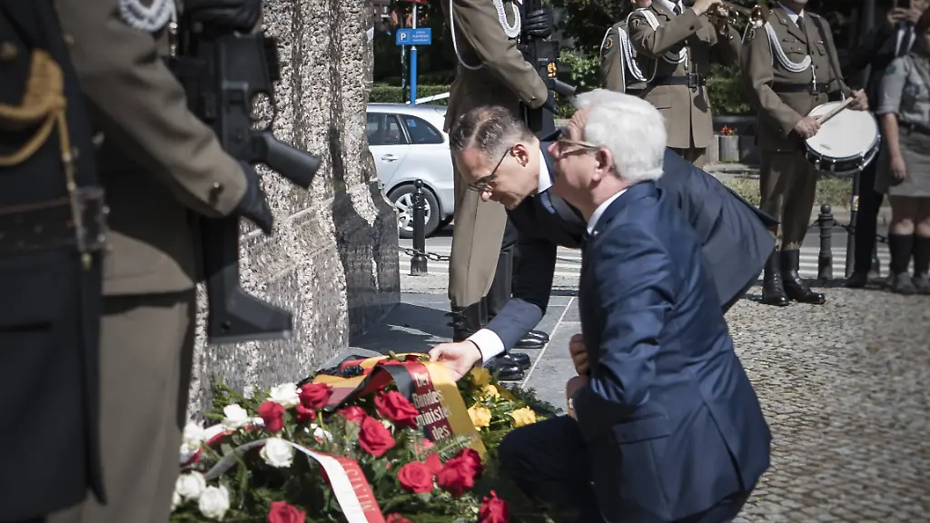 "Ich bin hierhergekommen, weil ich die Toten ehren und die Familien der Toten und Verletzten, weil ich das polnische Volk um Vergebung bitten will", sagte er. Gemeinsam mit Czaputowicz legte er am Donnerstag einen Kranz am Denkmal für die Opfer des Massakers von Wola während des Aufstands nieder. Es gilt als eines der schlimmsten Kriegsverbrechen des Zweiten Weltkriegs mit etwa 50.000 Toten. Bereits am Vorabend hatten die beiden gemeinsam an einem Gedenkgottesdienst vor dem Denkmal des Warschauer Aufstands teilgenommen.