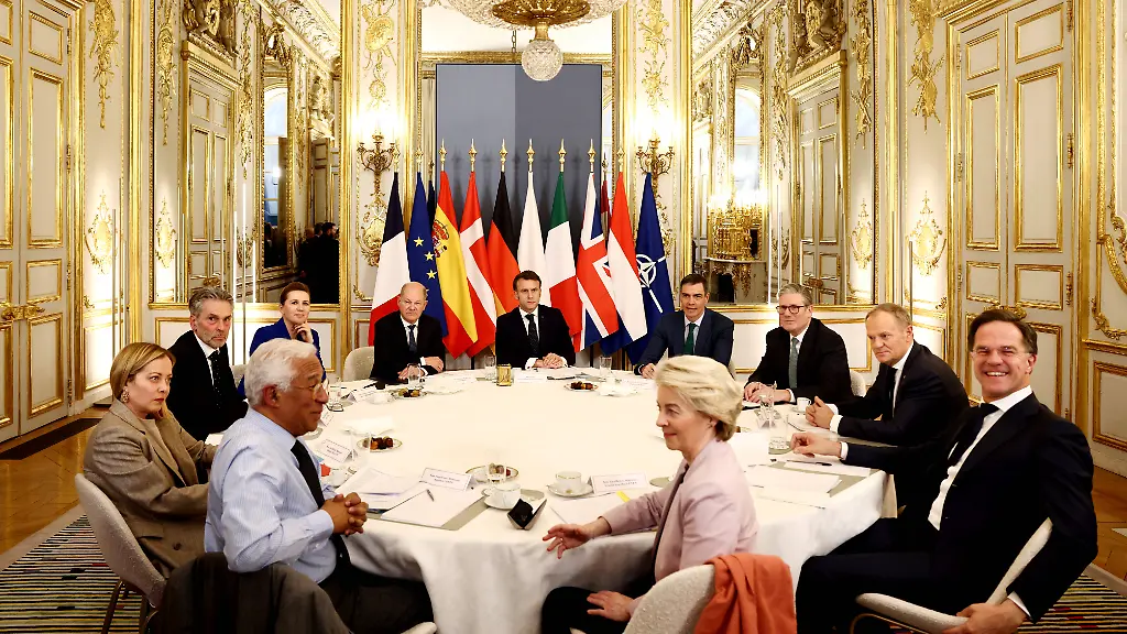 Das Ziel sei, bis zum Ende der Woche mit allen 27 EU-Ländern zu beraten. Der Elysée-Palast gab zunächst keine Einzelheiten zu dem Treffen bekannt, auch über die genauen Teilnehmer gab es vorerst keine Informationen. Mehrere europäische Spitzenpolitiker hatten sich bereits am Montag auf Einladung des französischen Präsidenten in Paris getroffen. Neben Bundeskanzler Olaf Scholz nahmen an dem Treffen unter anderem auch die Regierungschefs aus Großbritannien, Dänemark, Polen und Italien teil. Auch Nato-Chef Mark Rutte und EU-Kommissionschefin Ursula von der Leyen waren dabei.
