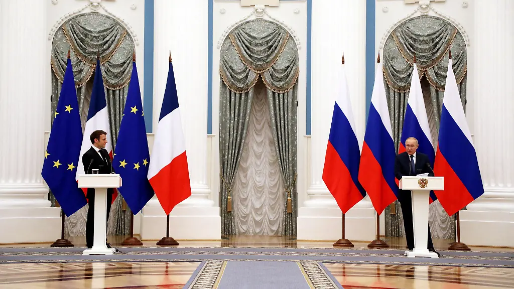 "Es muss möglich sein, den Dialog mit Russland wieder aufzunehmen. Warum? Weil an dem Tag, an dem wir Frieden haben, dieser Frieden auch Europa betreffen wird", sagte Macron. "Wir haben die Diskussionskanäle auf einer technischen Ebene wiederhergestellt." Nötig sei ein gut organisierter europäischer Ansatz. Es dürfe nicht zu viele Gesprächspartner geben, sagte Macron auf die Frage, ob er es sei, der mit Putin reden wolle.