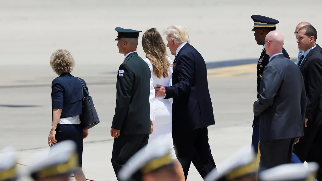 Was ist denn da in Israel los? Abseits der großen Politik sorgt ein Mini-Handgemenge auf dem Flughafen von Tel Aviv für Aufmerksamkeit. In den Hauptrollen: Donald und Melania Trump.