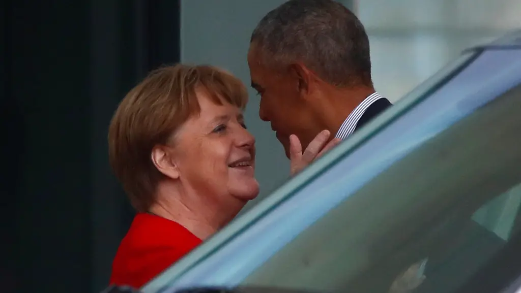 Küsschen, Küsschen. Und dann plaudern die beiden anderthalb Stunden miteinander, länger als manch amtierender Regierungschef Zeit von der Kanzlerin bekommt. Viele Signale, die Obamas republikanischen Nachfolger im Weißen Haus, Donald Trump, missfallen dürften. Entsprechend klar kommt das offizielle Dementi. Nein, dieser herzliche Empfang des Demokraten Obama solle kein Signal an Trump sein, betont Regierungssprecher Steffen Seibert ausdrücklich. "Diesem Eindruck würde ich entschieden widersprechen." Und doch: Am Empfang Obamas lässt sich unschwer ablesen, wie problematisch das Verhältnis der Deutschen zu Trump derzeit ist.