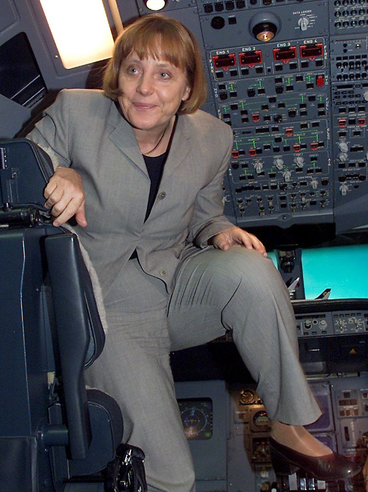 Merkel sitzt bereits Probe im A340 (Archivbild vom 08.06.2001).